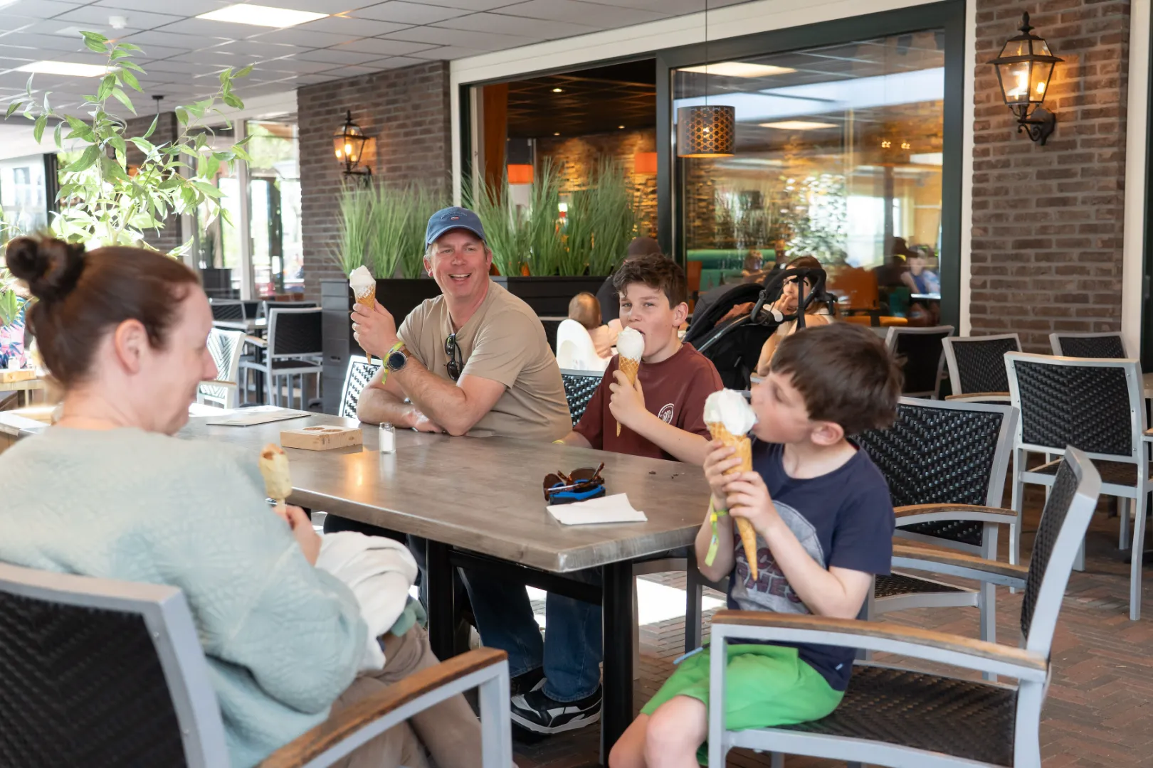 Terwijl ouders genieten van een kopje koffie of een lekkernij, kunnen kinderen zich urenlang vermaken in de kindvriendelijke faciliteiten: een overdekt zwembad met een 70 meter lange glijbaan, een binnenspeeltuin, een spraypark, midgetgolf, een kinderboerderij en een animatieteam.